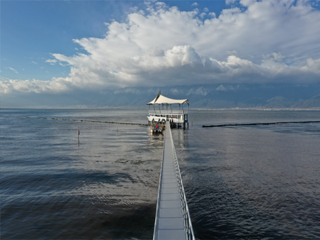 采用高效可調(diào)式渦井取藻、藍藻囊團破壁、一體化二級強化氣浮等核心技術(shù),岸上站點藻水分離系統(tǒng)集成了藍藻打撈、脫氣沉降、氣浮分離、脫水等多個環(huán)節(jié)的技術(shù)和設(shè)備,形成了可規(guī)?;凸S化處理藍藻的基站。適用于藍藻水華長期規(guī)律性、大范圍聚集區(qū)域的常態(tài)化應急處置。